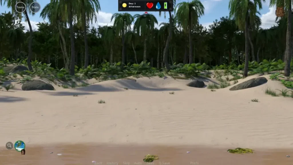 - Scout for Safe Water First 🗺️: Your thirst meter depletes fastest. Immediately explore the beach and nearby jungle edges to find coconut trees or clear streams. Never drink from murky sources without purifying them first.